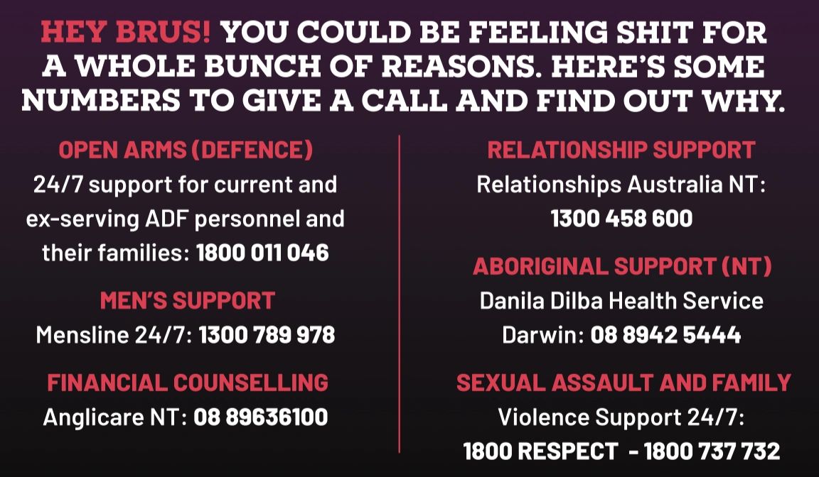 The Northern Territory has the highest rates of male suicide in the country? And here's the thing – mental health isn't always the only reason fellas reach that point. There are a shit tonne of other factors, including Quality of Life stresses, that can contribute to men considering suicide: